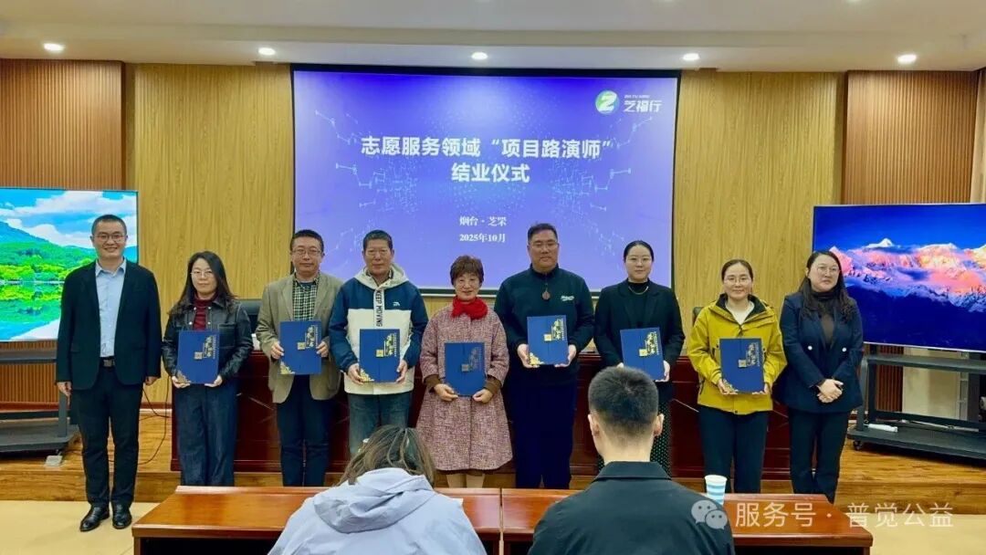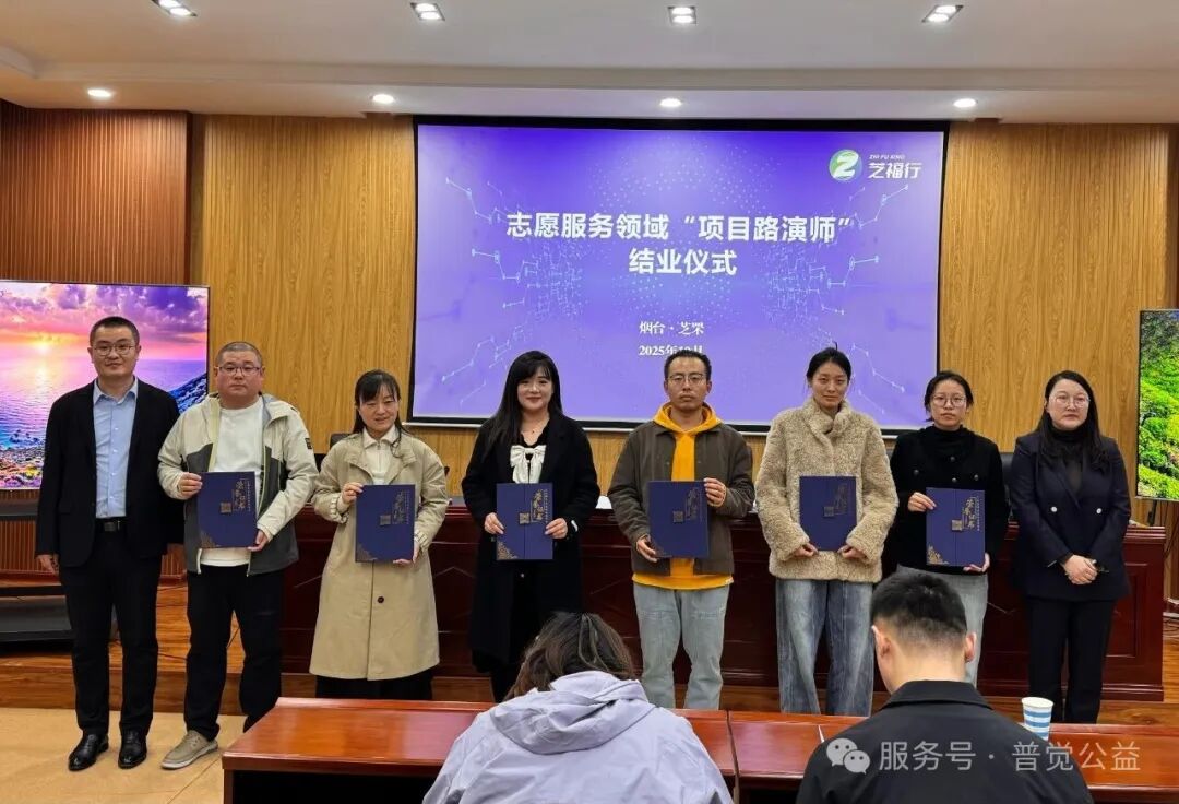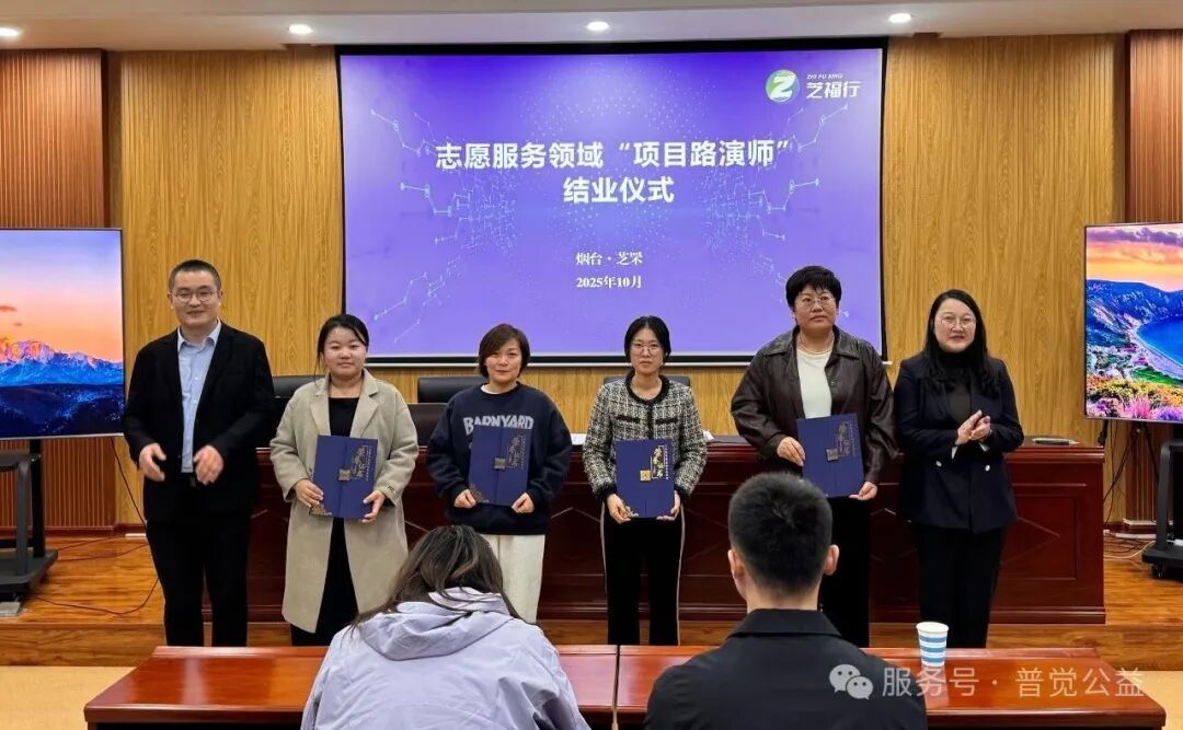 结业仪式上,烟台市芝罘区委社会工作部副部长于颖俐和山东省普觉公益基金会秘书长吕建勇共同为学员颁发结业证书,定格共同进步的温暖瞬间。