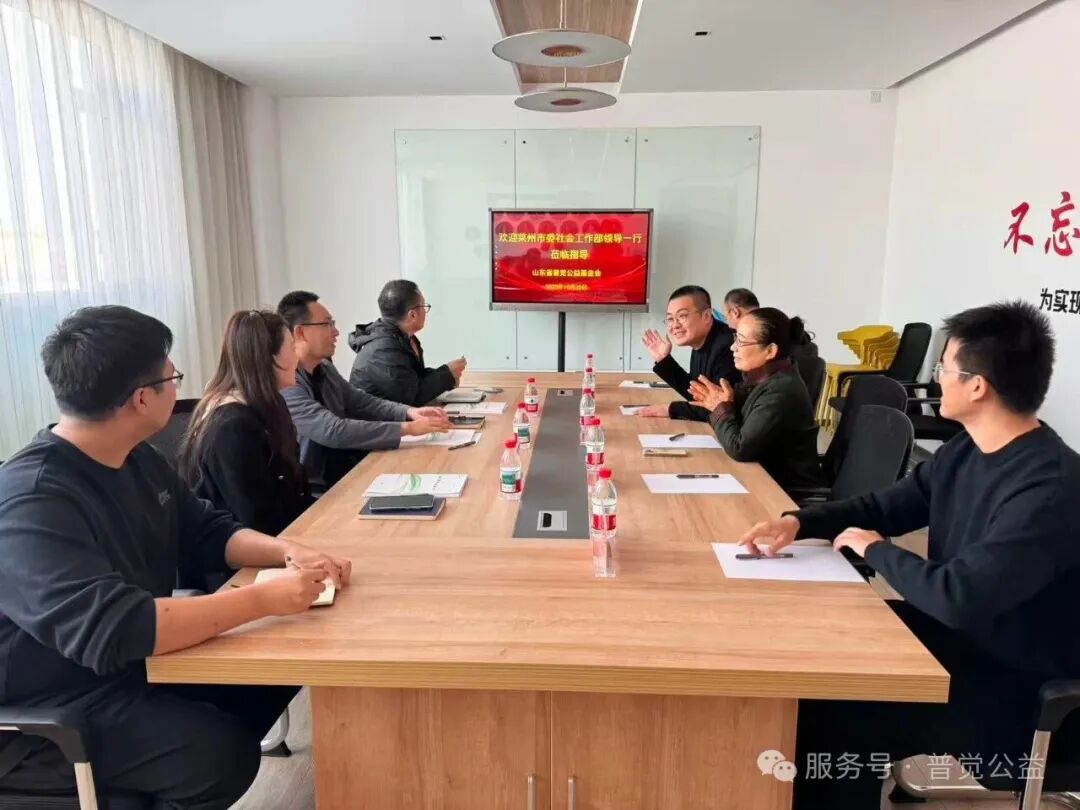 10月29日上午,莱州市委社会工作部部长苏昆、副部长张菲菲、三科王琪一行莅临山东省普觉公益基金会,就“社会工作与志愿服务组织及人才队伍建设、公益服务项目专业化运营”等内容开展深度调研与交流。山东省普觉公益基金会理事长姜小鸿、秘书长吕建勇、党支部书记李良、秘书处陈子祥热情接待并陪同座谈。