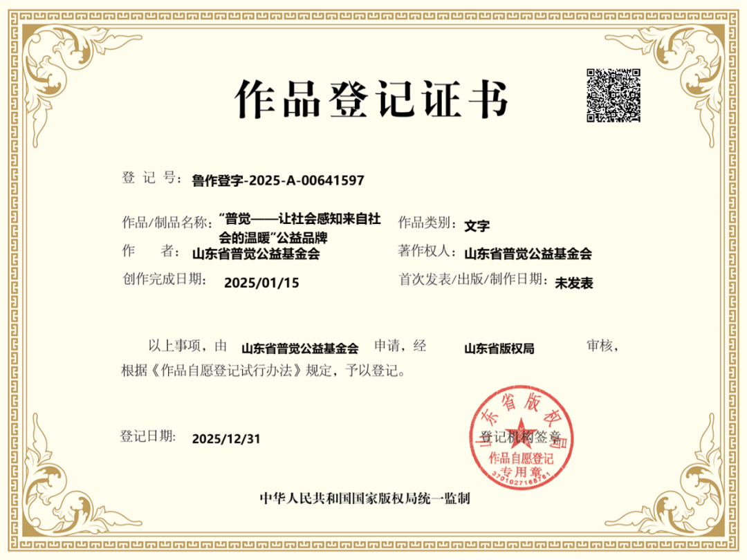 【“普觉——让社会感知来自社会的温暖”公益品牌】(登记号:鲁作登字 - 2025-A-00641597)