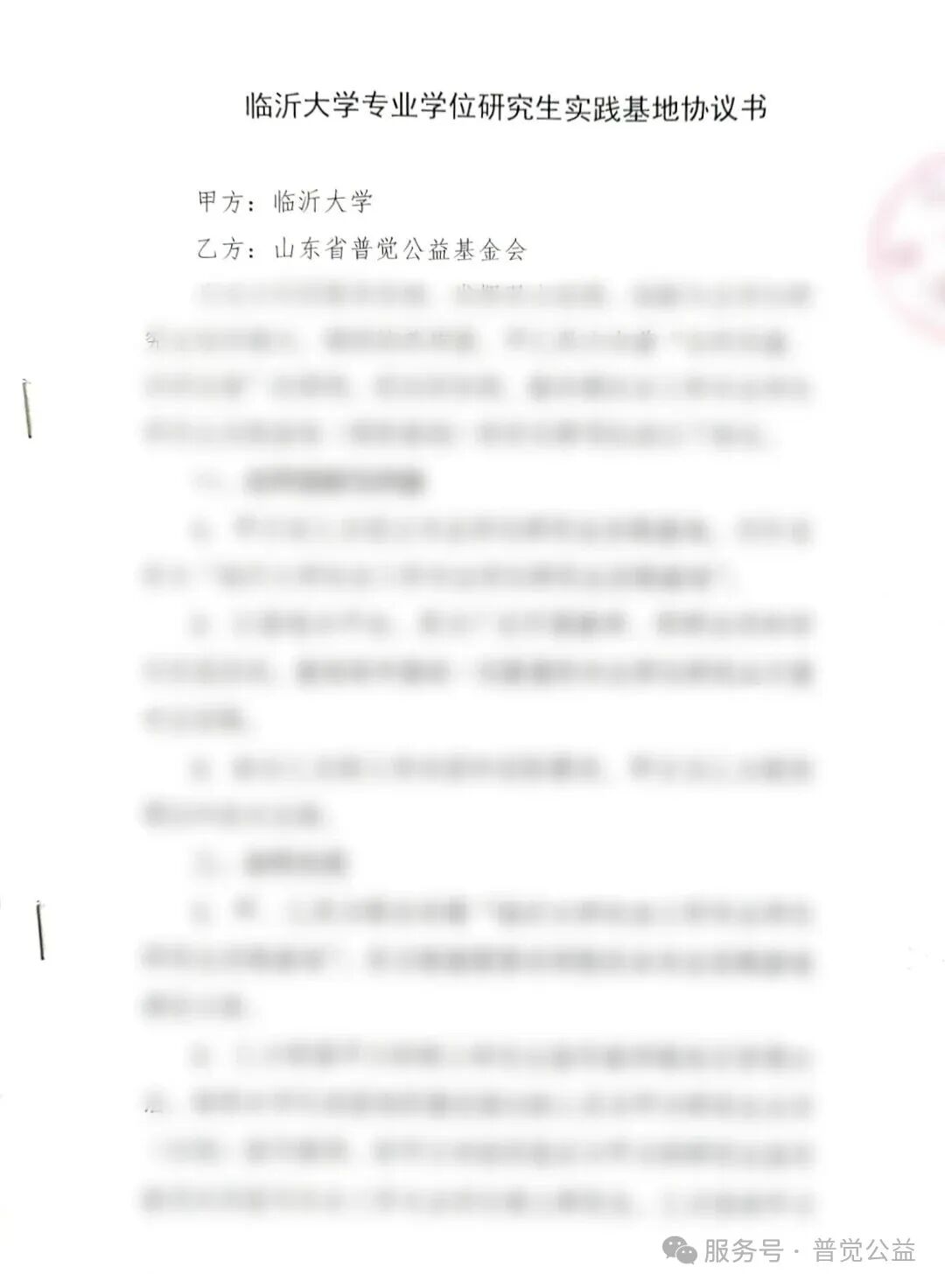 为了促进项目专业化发展,提升社会工作研究生实务能力,山东省普觉公益基金会与临沂大学正式签署合作协议,共同成立“社会工作专业学位研究生培养实践基地”。该基地是山东省普觉公益基金会建立的首个聚焦于社会工作专业硕士(MSW)培养的实践教学平台,标志着公益组织与高校在专业化、系统化培养社会工作高级实务人才方面开启了新的探索。