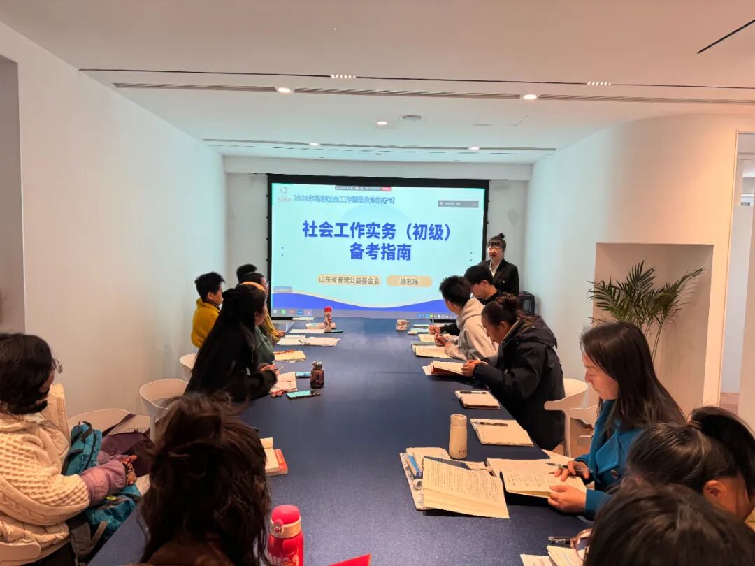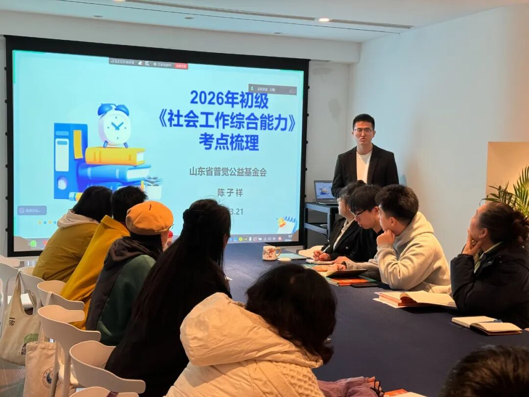 2026年3月21日,山东省普觉公益基金会助理社会工作者考试培训开班仪式顺利举行,40余名社工考试备考人员齐聚一堂,共同开启专业提升、赋能成长的公益学习之旅。本次培训以“零门槛入学、全维度赋能”为核心导向,创新采用线上直播与线下会场同步联动的模式,精准破解备考痛点,为基层社会工作人才队伍建设注入公益力量。