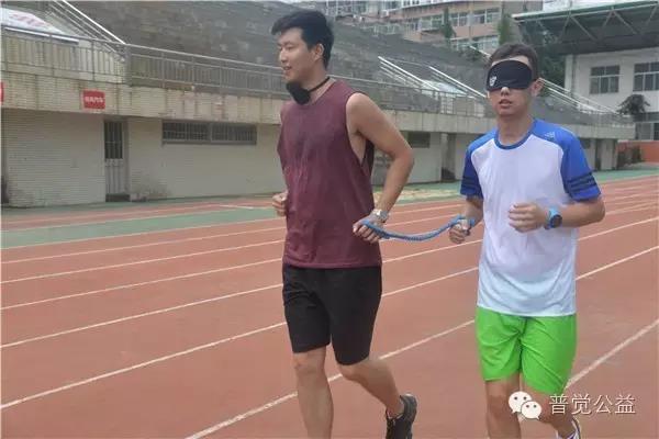 视障跑者完成视障跑步,需要一名受过专业训练的陪跑员的协助,陪跑人不是一件容易的差事,手里抓着的绳子是一份责任,他们相互信任,奔跑变得感动不已。此次培训内容包括“黑暗初体验”、陪跑基础知识介绍、基本陪跑阵型演练等,共有近50名学员参加此次培训。