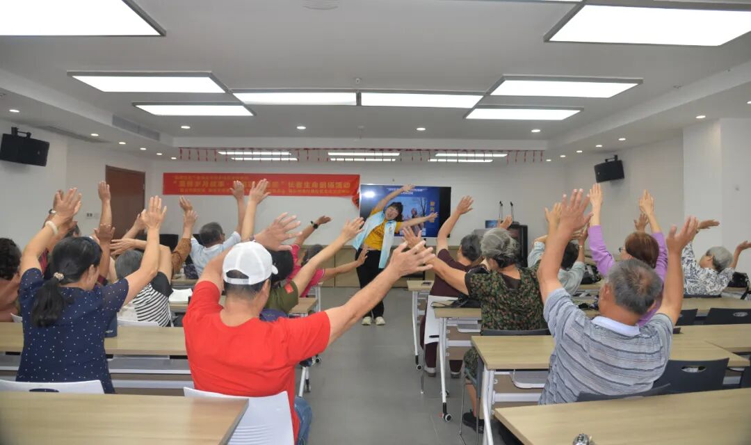 歌声落时,社工笑着上前:“咱们跟着做套八段锦吧,暖暖心,也松松筋骨。” 话音刚落,老人们纷纷调整坐姿,慢慢站起身。“两手托天理三焦......” 老人们抬起手臂,手腕慢慢向上托举,这不是简单的养生操,是生命剧场里一段 “慢节奏的群舞”,每个舒展的动作里,都藏着对身体的温柔关照,对彼此陪伴的安心,像给这场“演出”添了一段柔软的过渡。