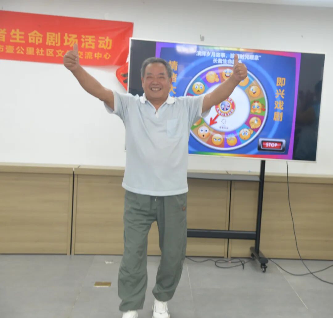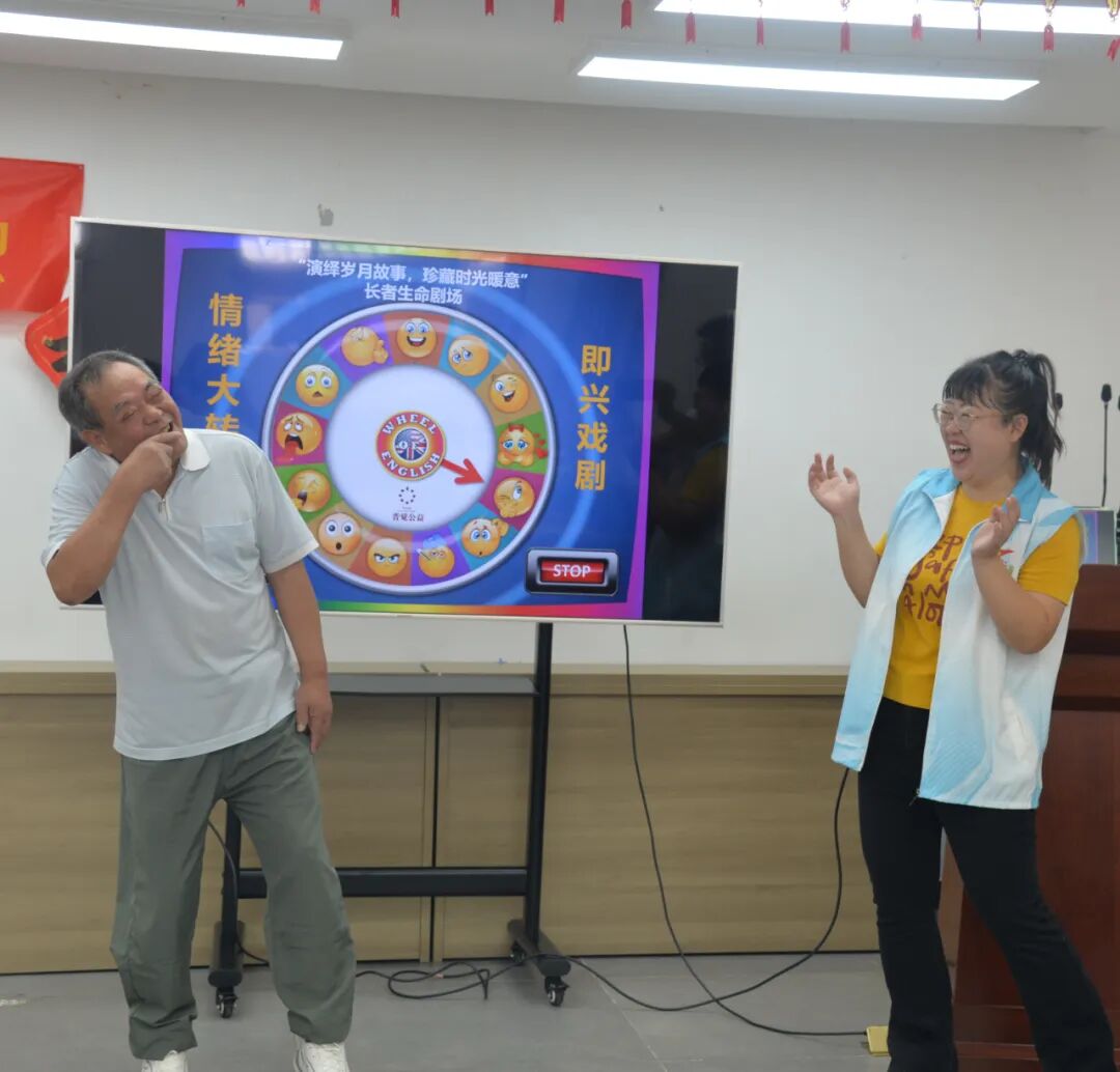 “情绪大转盘” 则成了一场“生命真心话剧”。抽到情绪的老人用动作或话语“演”出对应的感受。腰微微弯着,眼里亮得像有光,没有刻意的煽情,只有最真实的情绪流露,每个“演员”的“独白”,都让在场人想起自己生命里的相似瞬间,剧场里的空气,也跟着变得柔软。