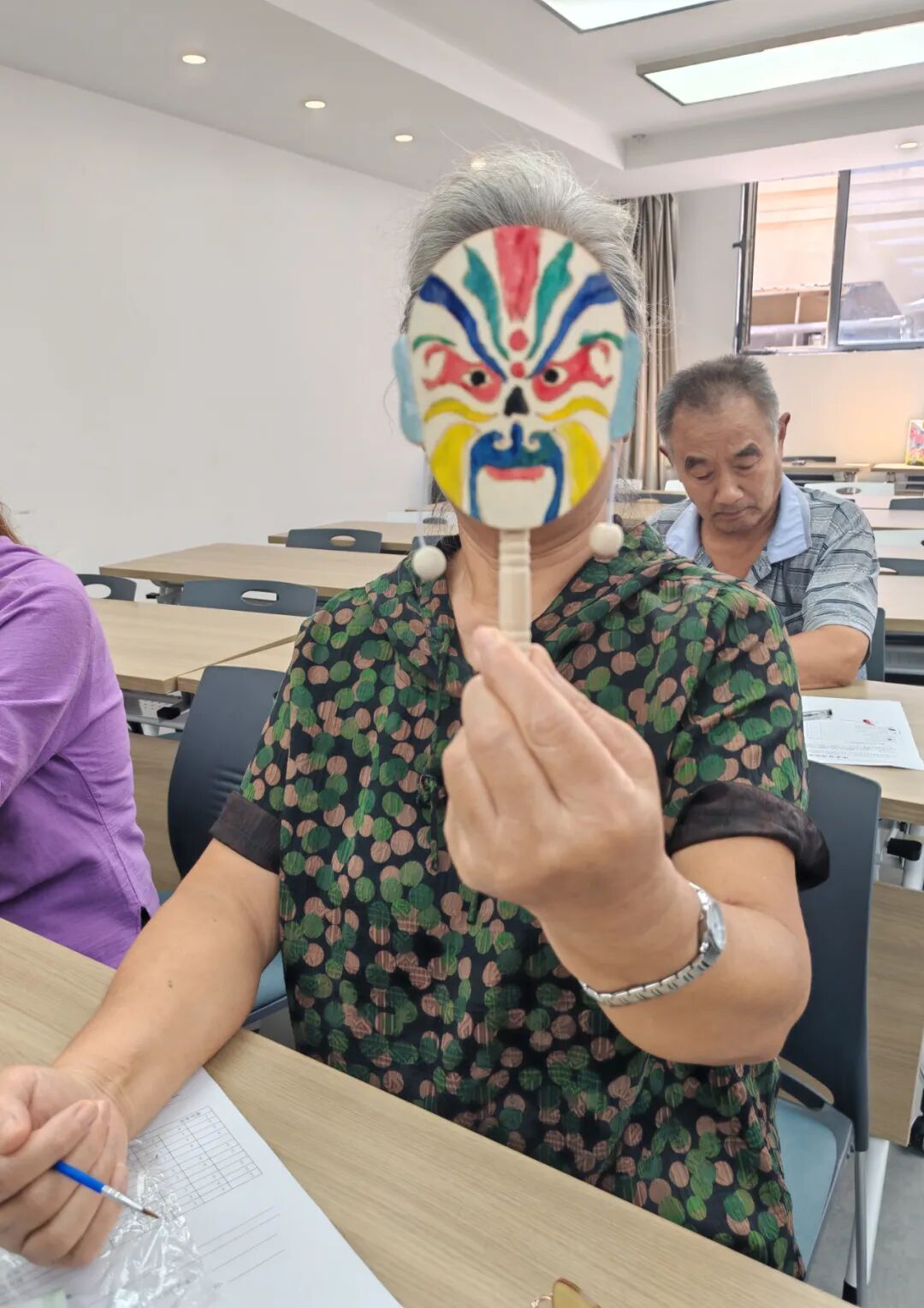 最后的“道具创作”,是剧场的“生命信物”。老人们拿起画笔,在京剧脸谱上“画角色”:有人画关公,说“讲义气,安心”;有人画花脸,说“想起村口看京剧的热闹”。当第一个拨浪鼓“咚咚”响起,更多的鼓声跟着应和,清脆的声响像剧场的“谢幕音乐”,老人们的笑容像被阳光晒透的棉花,软乎乎的。