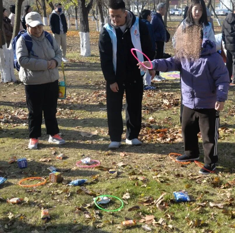 在“欢乐套圈”区域,孩子们在志愿者一对一的鼓励下,专注地投出每一个圈圈,成功的欢呼与尝试的专注同样动人。