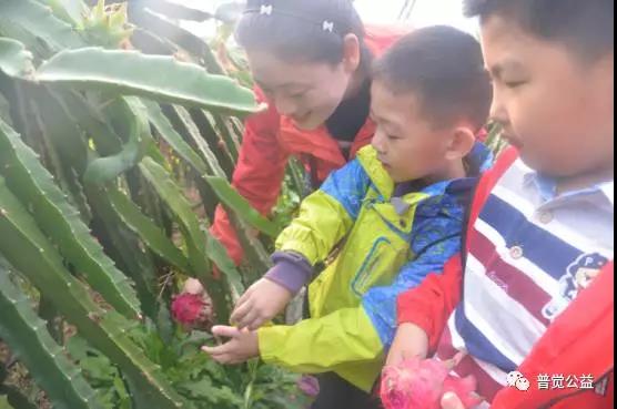 孩子们动手采摘火龙果,感受收获的喜悦